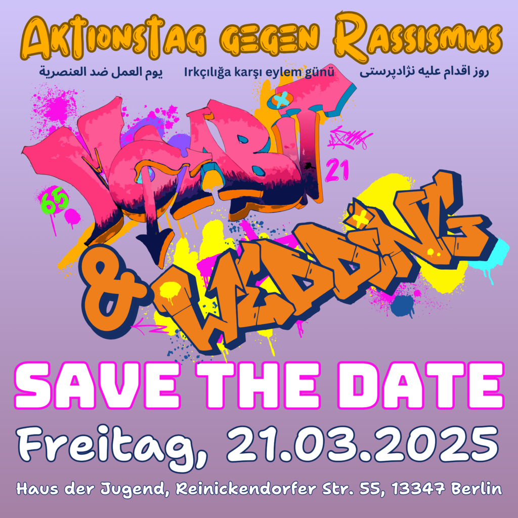 Unter dem Motto ‚Menschenwürde schützen‘ finden vom 17. bis 30. März 2025 die Internationalen Wochen gegen Rassismus #IWgR25 statt. Das Bündnis Zusammen gegen Rassismus Moabit & Wedding beteiligt sich wieder mit zahlreichen Veranstaltungen.